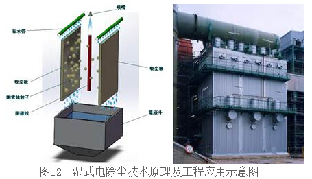 WESP是在克服干式電除塵器及傳統(tǒng)噴水除塵器弊端的基礎(chǔ)上發(fā)展起來的。其工作原理為:懸浮粒子氣溶膠荷電、帶電粒子在電場里遷移和捕集,粉塵從陽極板(布)表面上清洗三個基本過程。其工作過程是:電暈放電,使霧滴荷電,含塵離子處于霧滴的“包圍”之中,霧滴在向陽極板(布)移動的過程中與粉塵碰撞結(jié)合成較大荷電粒子,荷電粒子在電場力的作用下向收塵極遷移并被收塵極捕集。在噴淋作用下,粉塵被沖刷清除[12]。WESP既消除了傳統(tǒng)靜電除塵器產(chǎn)生爆炸的隱患和電暈閉塞現(xiàn)象,又解決了反電暈和高壓絕緣等問題;最重要是提高了除塵器的除塵效率達到了近零排放要求,同時消除了“石膏雨”。WESP具有煤種適應(yīng)性好,高效捕集SO3氣溶膠,可消除石膏雨,控制氨逃逸等優(yōu)點,能夠?qū)崿F(xiàn)除塵效率達到99.9% 以上,出口粉塵濃度可控制在20mg/m³ 甚至5mg/m³ 以下,PM2.5的去除率高達95%以上。在國內(nèi)湖南益陽300MW機組、福建上杭瑞翔紙業(yè)20t/h循環(huán)流化床鍋爐及上海長興島第二發(fā)電廠15MW機組等取得了應(yīng)用,效果良好。