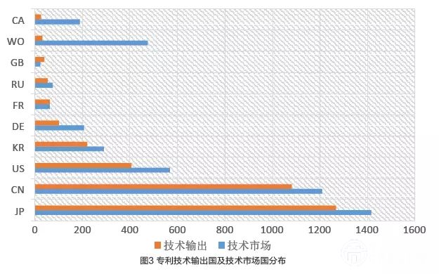 從專利技術(shù)的國(guó)家/地區(qū)來(lái)源看,日本雖然在基礎(chǔ)研究方面表現(xiàn)平平,但是專利技術(shù)的申請(qǐng)量最多,約占全部專利的35.2%,其次是中國(guó)和美國(guó),分別占總專利量的30.0%和11.3%??梢钥吹?,主要的修復(fù)技術(shù)掌握在這三個(gè)國(guó)家。從專利技術(shù)市場(chǎng)分布來(lái)看,土壤重金屬污染修復(fù)相關(guān)專利技術(shù)保護(hù)主要布局在日本、中國(guó)、美國(guó)、WO、歐專局、韓國(guó)、澳大利亞、德國(guó)、加拿大和俄羅斯等國(guó)家/地區(qū)(圖3)。