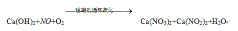 預(yù)留低溫循環(huán)氧化脫硝(COA)接口,COA依托LJD-FGD脫硫除塵裝置,利用脫硝劑的強(qiáng)氧化和催化作用,將NO轉(zhuǎn)化為NO2,再與鈣基吸收劑發(fā)生中和反應(yīng),其反應(yīng)方程式如下: