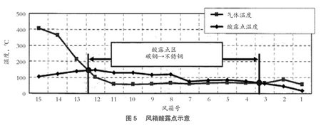 2)根據(jù)繪制的酸露點分布圖,正確選擇風(fēng)箱材質(zhì)。