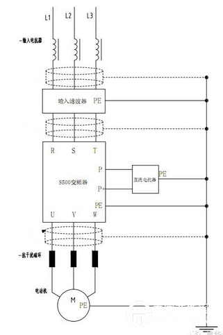 (2)輸出濾波器也由電感線圈構(gòu)成。它可以有效地削弱輸出電流中的高次諧波成分。非但起到抗干擾的作用,且能消弱電動機中由高次諧波產(chǎn)生的諧波電流引起的附加轉(zhuǎn)矩。對于變頻器輸出端的抗干擾措施,必須注意一下方面: