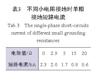 另外,計(jì)算20kV電網(wǎng)中性點(diǎn)經(jīng)不同電阻接地時(shí)單相接地短路電流(考慮接地變壓器阻抗),如表3所示。