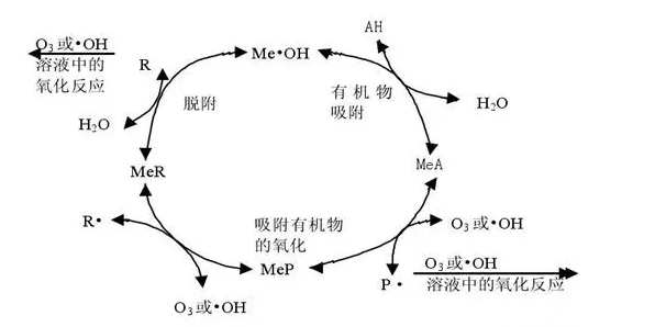 當(dāng)臭氧溶于水中時,具有較高的氧化還原電位。主要是臭氧在水中產(chǎn)生氧化能力較強(qiáng)的、無選擇性的˙OH,再與有機(jī)物發(fā)生一系列的反應(yīng)。臭氧具有殺菌、除臭、脫色等能力,因此被廣泛使用廢水處理領(lǐng)域。