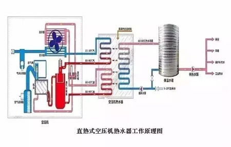 空壓機熱能熱水機組,是一種利用壓縮機高溫油氣熱能,通過熱交換將熱能充分利用的節(jié)能設(shè)備。它通過能量交換和節(jié)能控制,收集空壓機運行過程中產(chǎn)生的熱能,同時改善空壓機的運行工況,是一種相對高效廢熱利用、零成本運行的節(jié)能設(shè)備。