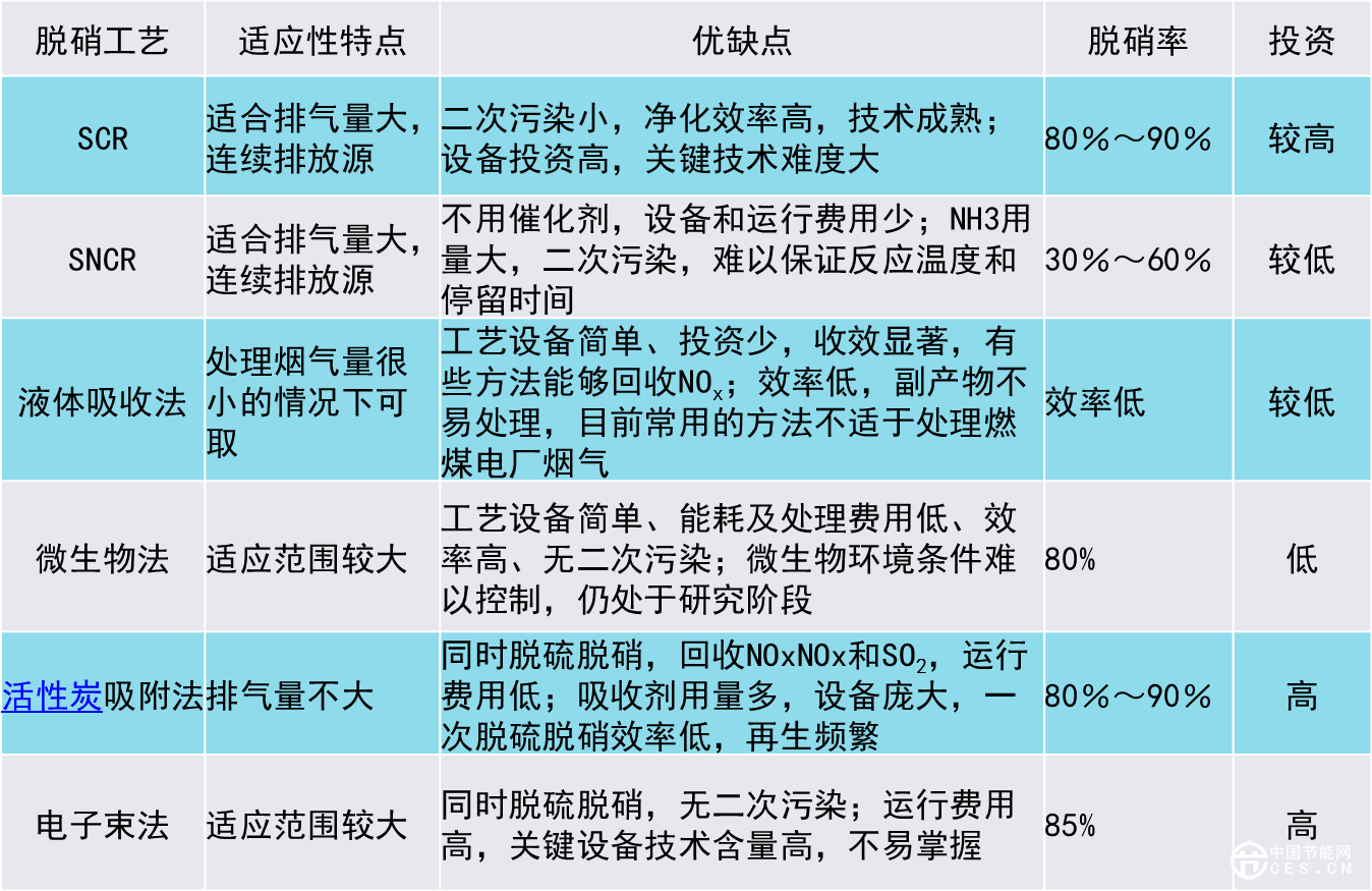 主要脫硝技術匯總表