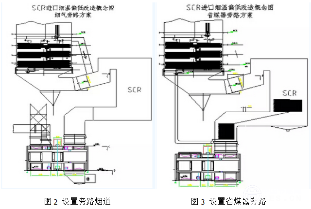 設(shè)置旁路煙道投資成本低,通過調(diào)節(jié)當(dāng)班調(diào)節(jié)煙氣流量可使催化劑工作于最佳反應(yīng)溫度范圍,但是對煙氣擋板的可靠性要求較高,降低了鍋爐的效率。