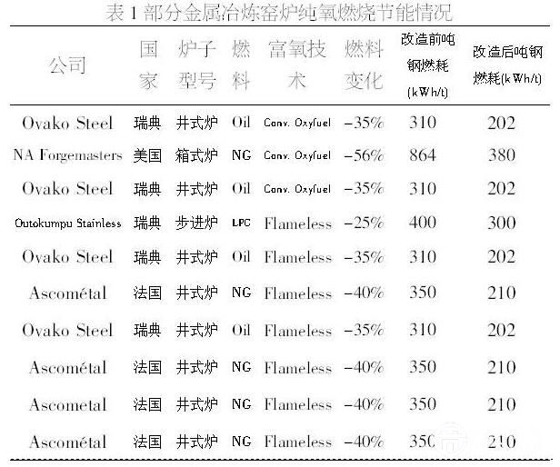 目前,林德的富氧燃燒技術(shù)在鋼鐵和有色金屬冶煉、熱處理、玻璃熔化、垃圾發(fā)電等工業(yè)領(lǐng)域應(yīng)用十分廣泛。尤其在有色金屬冶煉、鋼鐵熱處理及玻璃窯爐中,已經(jīng)逐步開始使用純氧代替富氧或空氣,使得窯爐節(jié)能效果能達到40-60%,尾氣排放減少70%,并大量減少NOX等有害氣體排放。部分金屬冶煉窯爐純氧燃燒節(jié)能情況如表1所示。