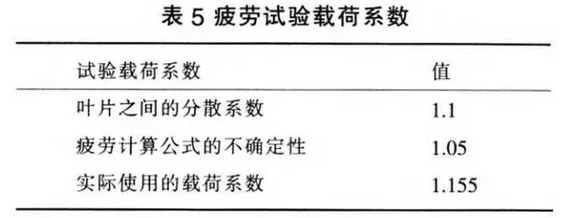 考慮到葉片之間的分散系數(shù)和疲勞計算公式的不確定性,實際計算疲勞試驗載荷時,需考慮上1.155的疲勞試驗載荷系數(shù)(見表5)。