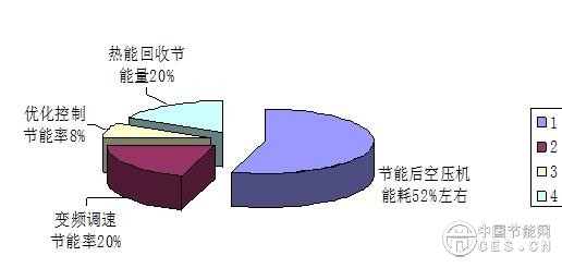 根據(jù)空壓機(jī)電機(jī)系統(tǒng)節(jié)能項(xiàng)目的多年實(shí)施經(jīng)驗(yàn)總結(jié),大多數(shù)壓縮空氣系統(tǒng)所消耗的能源明顯高于其實(shí)際消耗的能源量,高送低用、系統(tǒng)泄漏、人為虛假用氣和不正確使用大約消耗了約40%的壓縮空氣量,導(dǎo)致了大量氣能損失,通過壓縮空氣系統(tǒng)的優(yōu)化控制可以達(dá)到15~35%的節(jié)能效果。