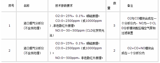 為配套煙氣快速取樣測(cè)量系統(tǒng)及常規(guī)SCR性能試驗(yàn),采購(gòu)用于脫硝系統(tǒng)現(xiàn)場(chǎng)煙氣組分(NO/O2/CO)測(cè)量的煙氣分析儀。