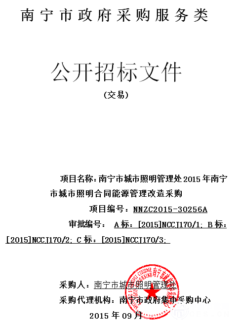 一、項目名稱:南寧市城市照明管理處2015年南寧市城市照明合同能源管理改造采購