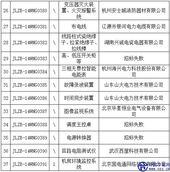 國網(wǎng)(吉林)2014年第五批物資招標中標公示