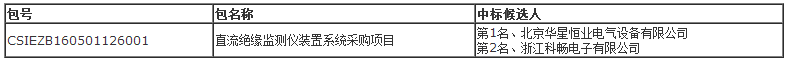 中國神華國際工程有限公司受神華福能發(fā)電有限責任公司的委托,就神華福能發(fā)電有限責任公司2×1050MW超超臨界燃煤發(fā)電機組直流絕緣監(jiān)測儀裝置系統(tǒng)采購項目(招標編號:CSIEZB160501126)項目進行公開招標,按規(guī)定程序進行了評標、定標,現(xiàn)就本次招標的中標候選人公示如下: