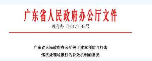 廣東省人民政府辦公廳發(fā)布了《關(guān)于建立預(yù)防與打擊違法處理垃圾行為長(zhǎng)效機(jī)制的意見(jiàn)》,具體內(nèi)容如下: