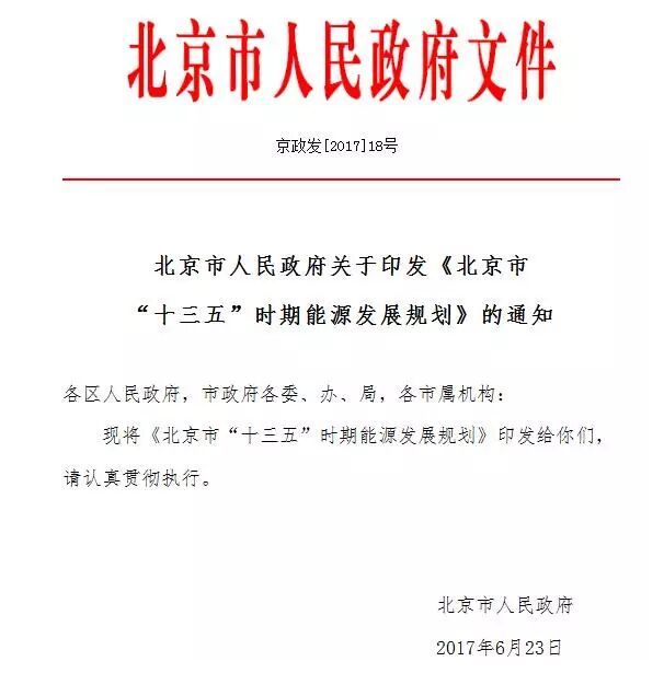北京市“十三五”時期能源發(fā)展規(guī)劃